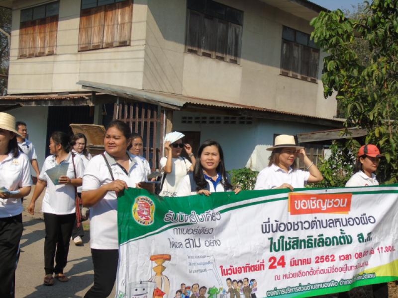 นำโดย นายอัยเรศ เพชรอัมพร์ รองนายกองค์การบริหารส่วนตำบลหนองผือ พนักงานและลูกจ้าง ร่วมกับ กำนัน ผู้ใหญ่บ้าน ประชาชน อสม. รพ.สต.ปากคาน และน้องๆศูนย์พัฒนาเด็กเล็กบ้านปากห้วย จัดกิจกรรมเดินรณรงค์โค้งสุดท้าย ประชาสัมพันธ์การเลือกตั้ง เชิญชวนให้ประชาชนออกมาใช้สิทธิ์เลือกตั้ง รณรงค์การไม่ซื้อสิทธิขายเสียง ส่งเสริมการเลือกตั้งสุจริต โปร่งใส