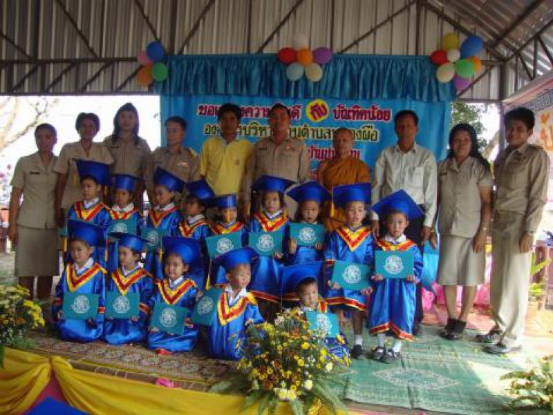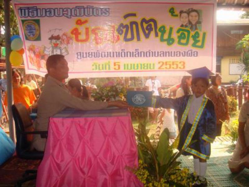 รายละเอียด : องค์การบริหารส่วนตำบลหนองผือจัดกิจกรรมแสดงผลงานของการจัดการศึกษาของศูนย์พัฒนาเด็กเล็กตำบลหนองผือ และมอบวุฒิบัตรบัณฑิตน้อย ในวันที่ 5 เดือน เมษายน พ.ศ. 2553 โดยมีนายชวการ จำรูญศิริ นายกองค์การบริหารส่วนตำบลหนองผือ เป็นประธานในพิธี โดยมีวัตถุประสงค์เพื่อเป็นการปลูกจิตสำนึกให้นักเรียนได้รำลึกถึงสถาบันของตนเอง และเมื่อมีโอกาสจะได้มาพัฒนาให้เจริญก้าวหน้ายิ่งขึ้น ให้นักเรียนได้มีความรู้สึก / เจตคติที่ดีและสร้างขวัญกำลังใจ ให้แก่นักเรียนที่จบการศึกษาและจะเป็นผลให้การดำเนินชีวิตในระดับต่อไปดียิ่งขึ้น เป็นเผยแพร่ผลงานในการจัดการศึกษาของศูนย์พัฒนาเด็กเล็กตำบลหนองผือ ให้เป็นที่ยอมรับในชุมชนและสังคม และเพื่อจัดเวทีแลกเปลี่ยนแนวคิด ในการจัดการศึกษาของศูนย์พัฒนาเด็กเล็กตำบลหนองผือ ระหว่างผู้ปกครองนักเรียน ครูศูนย์พัฒนาเด็กเล็ก ผู้บริหารท้องถิ่น