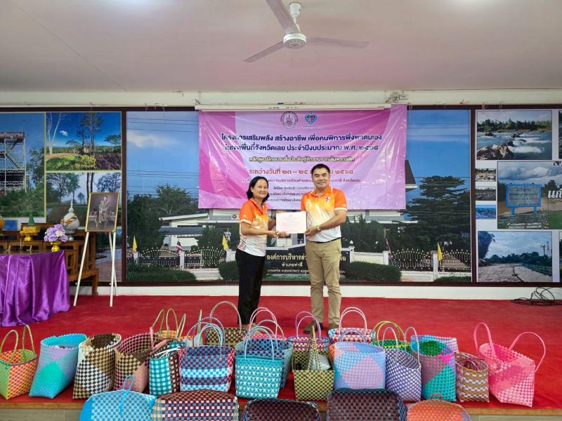 รายละเอียด : วันที่ 23 กันยายน 2568 นายธีรยุทธ พิลาคุณ นายกองค์การบริหารส่วนตำบลหนองผือ ได้ร่วมเป็นประธานเปิดโครงการเสริมพลัง สร้างอาชีพ เพื่อคนพิการพึ่งพาตนเองในเขตพื้นที่จังหวัดเลย ประจำปีงบประมาณ พ.ศ. 2568 หลักสูตรฝึกอบรมสิ่งประดิษฐ์จักสานจากเส้นพลาสติก ระหว่างวันที่ 23-25 กันยายน 2568 จัดโดยศูนย์บริการคนพิการจังหวัดเลย มีผู้เข้าร่วมประกอบด้วย ผู้พิการและผู้ดูแลคนพิการในพื้นที่ตำบลหนองผือ จำนวน 20 คน วัตถุประสงค์เพื่อการสร้างอาชีและรายได้ให้แก่ผู้พิการและผู้ดูแลคนพิการและใช้เวลาว่างให้เกิดประโยชน์