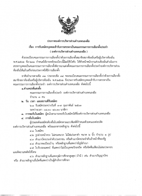 ประกาศรับสมัครบุคคลเข้ารับการสรรหาเป็นคณะกรรมการการเลือกตั้งประจำองค์การบริหารส่วนตำบลหนองผือ