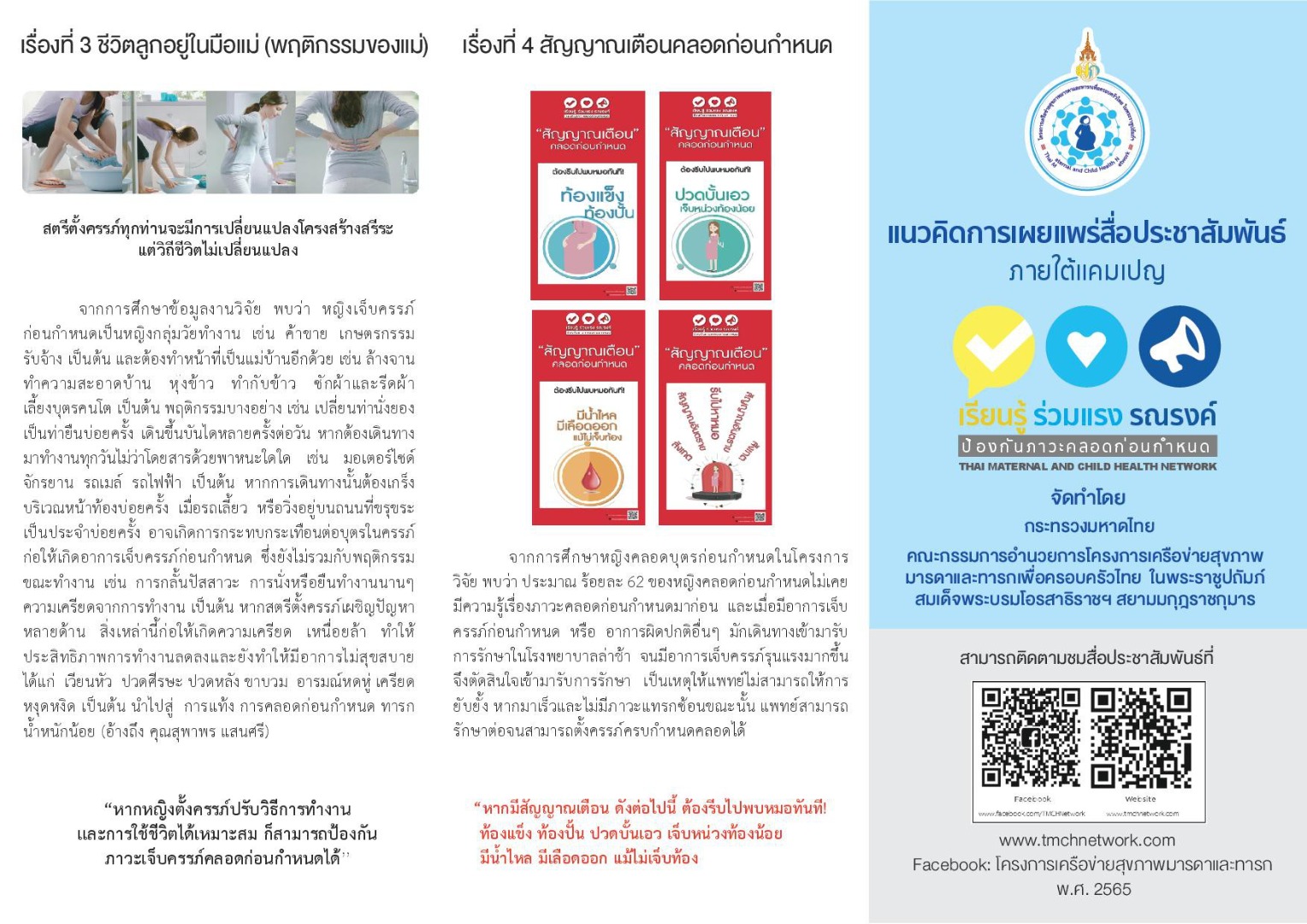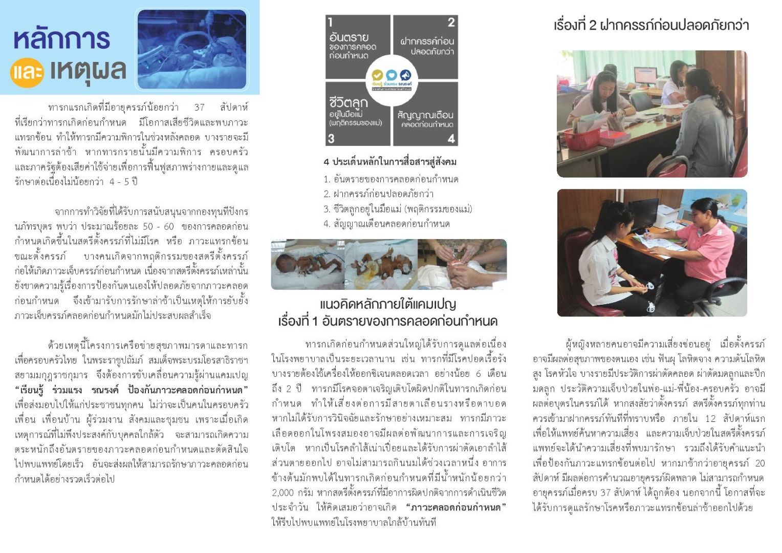 แผ่นพับประชาชสัมพันธ์โครงการสร้างเสริมสุขภาพเชิงรุก เพื่อลดภาวะคลอดก่อนกำหนด