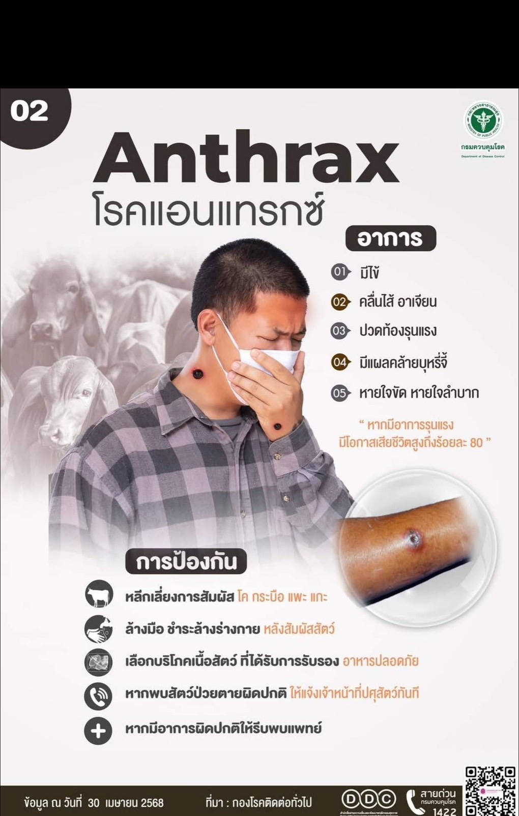 ชื่อเรื่อง : เตือนภัยและเฝ้าระวังโรคแอนแทรกซ์ (Anthrax)