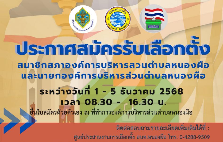 ประกาศสมัครรับเลือกตั้ง สมาชิกสภาองค์การบริหารสวนตำบลหนองผือ และนายกองค์การบริหารส่วนตำบลหนองผือ